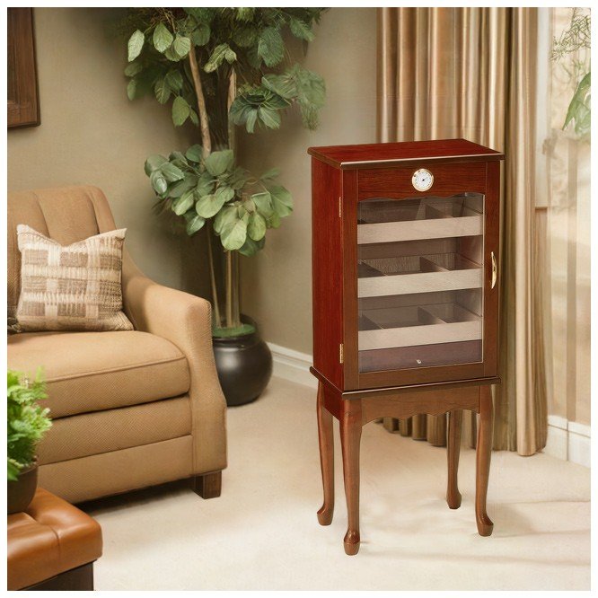 600 Ct. Bronze Mahogany Finish w/ Glass Door on Legs